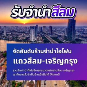 ร้านรับจำนำสาธร ให้บริการโดย รับจํานําสีลม.com เราคือผู้ให้บริการรับจำนำสินค้าไอทีครบวงจร ไม่ว่าจะเป็น รับจำนำ iPhone, รับจำนำ iPad, รับจำนำมือถือ, รับจำนำ MacBook, รับจำนำโน๊ตบุ๊ก, รับจำนำกล้อง, และ อุปกรณ์ไอทีทุกชนิด ด้วยประสบการณ์ และ ความเชี่ยวชาญ เราพร้อมให้บริการลูกค้าทุกท่านด้วยความซื่อสัตย์ โปร่งใส เราประเมินราคาสินค้าของคุณอย่างยุติธรรม และ ให้ราคาที่สูง พื้นที่ สีลม สาทร เจริญกรุง พญาไท พระราม3 พระราม4